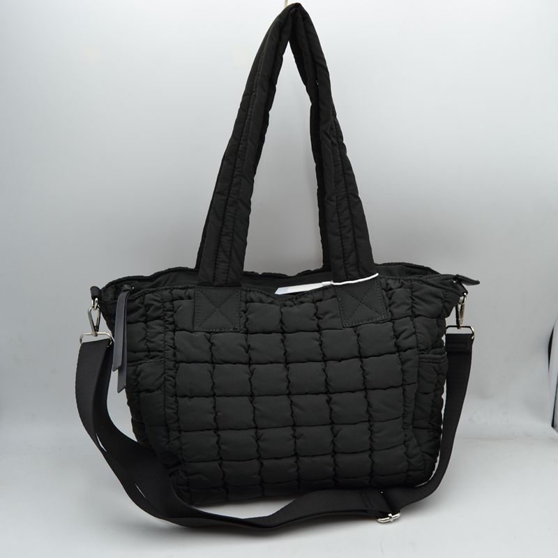Black Puffer Bag Tote with Straps