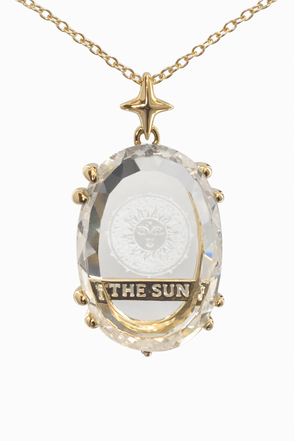 Sun / Moon Pendant Embrace celestial balance with this handcrafted Sun / Moon pendant, suspended on an adjustable gold chain that fits 16–18 inches. The sun symbolizes vitality, warmth, and conscious intention—a reminder to shine your light boldly. The moon represents intuition, reflection, and inner wisdom, grounding you in lunar cycles and emotional depth. Together, these complementary symbols create a meaningful talisman for those seeking harmony between action and stillness, day and night. A versatile piece that transitions seamlessly from everyday wear to intentional layering.