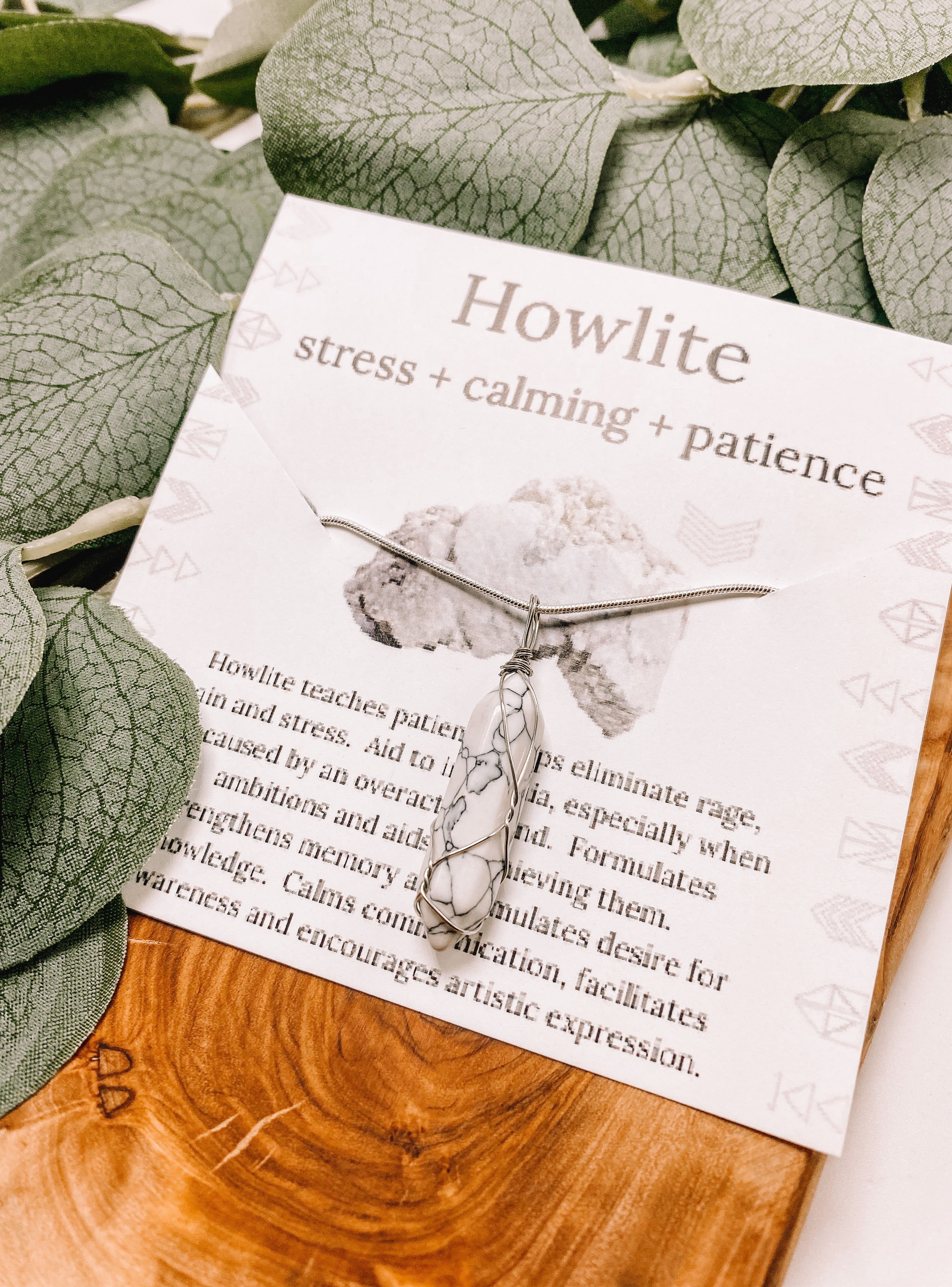 Wire Wrapped Howlite Crystal Pendant Necklace