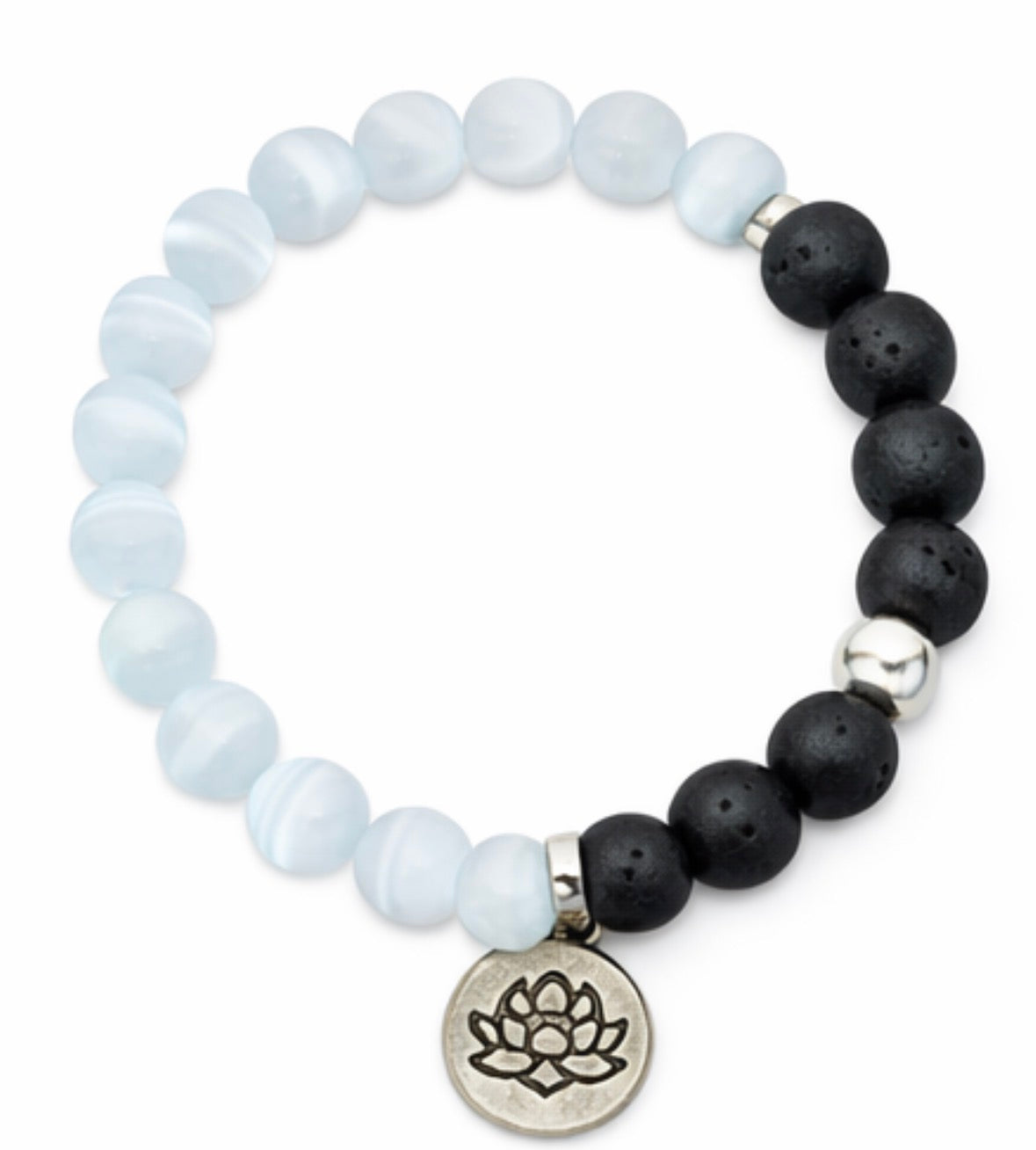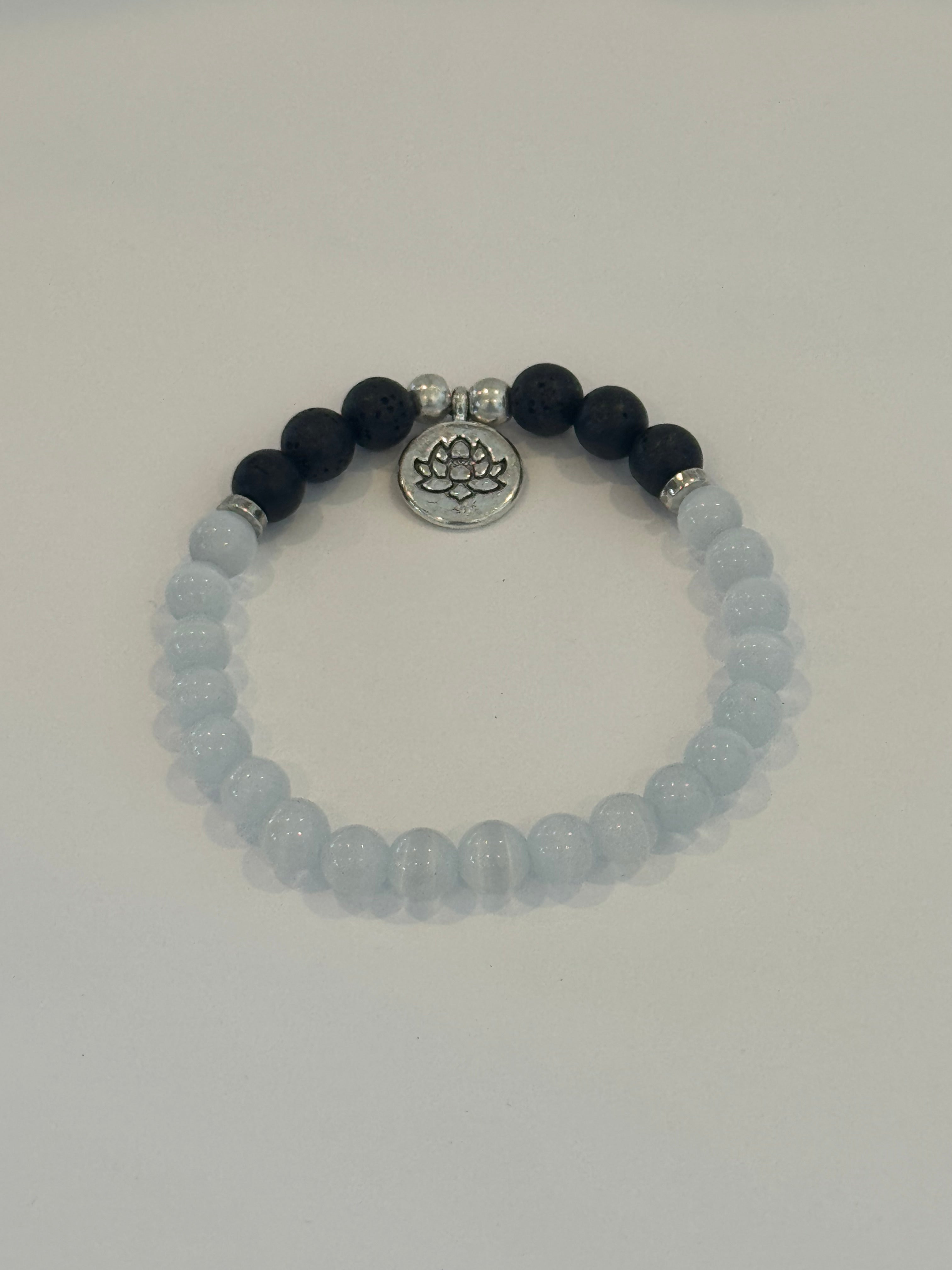 Embrace the calming energy and the benefits of aromatherapy with our Selenite Lava Diffuser Bracelet. This beautiful piece features: