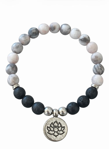 Embrace the calming energy and the benefits of aromatherapy with our Zebra Jasper Lava Diffuser Bracelet. This beautiful piece features: